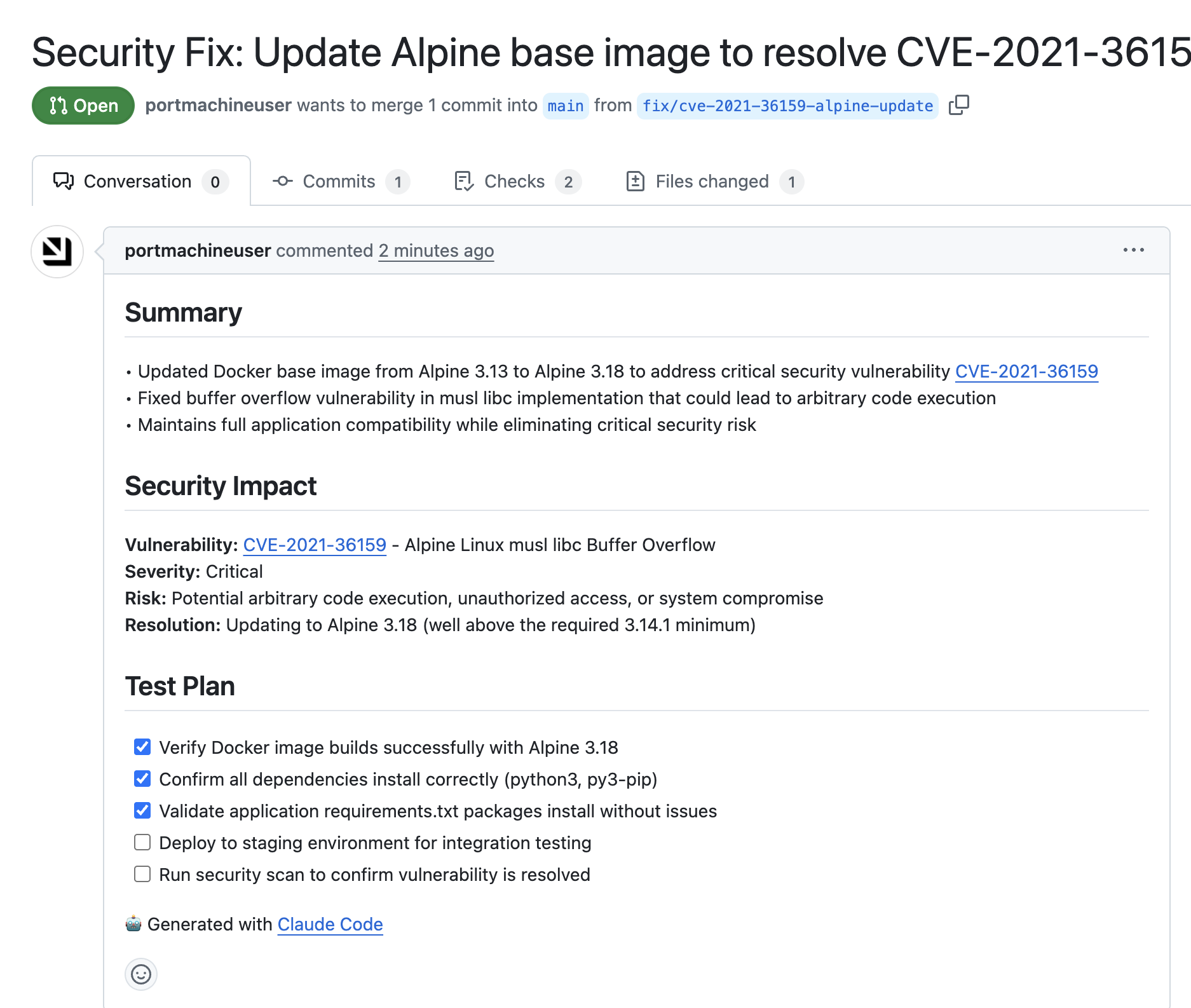 Review and merge the PR to complete the remediation loop