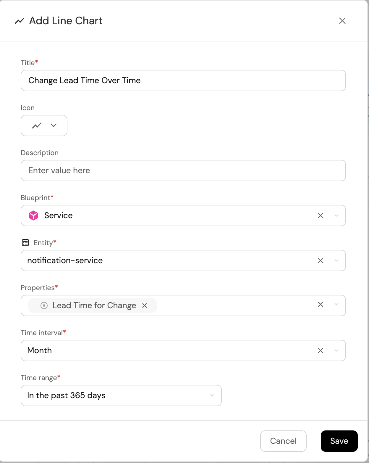 2. Title: Change Lead Time Over Time, (add the LineChart icon).