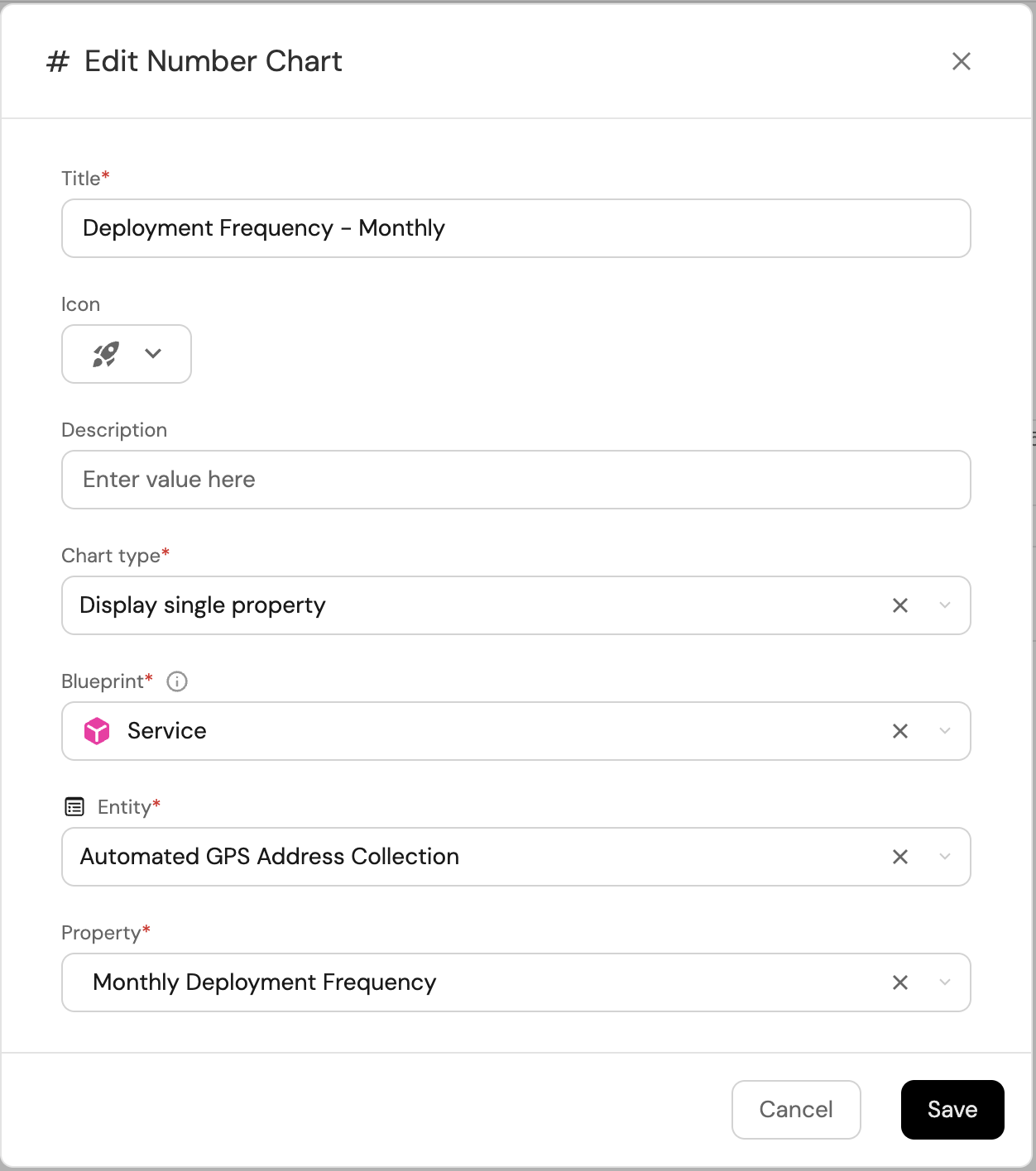 2. Title: Deployment Frequency - Monthly, (add the rocket icon).
