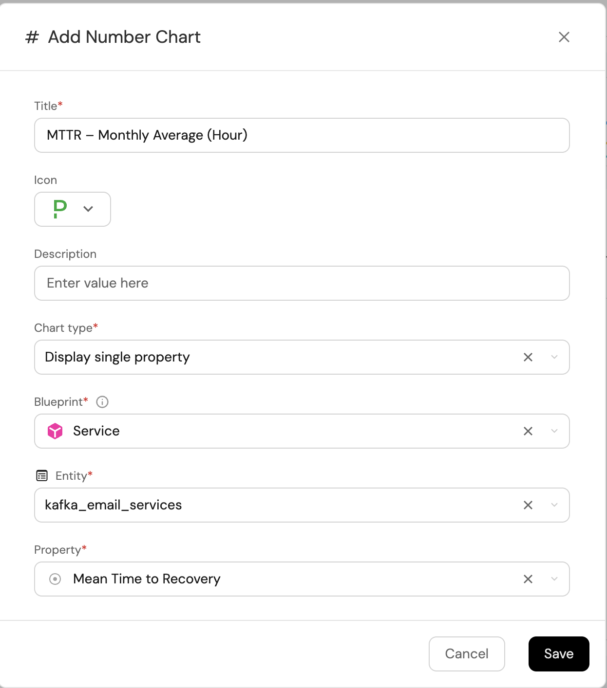 4. Select an Entity and choose Mean Time to Recovery as the Property.